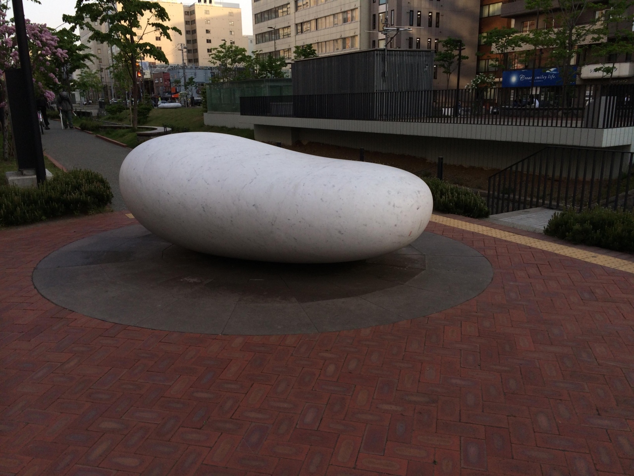 形を観ると胎児のようにも思えるので、近くにある別の野外彫刻である「生誕」というタイトルがふさわしいようにも思えますが、「天秘」という作品です。