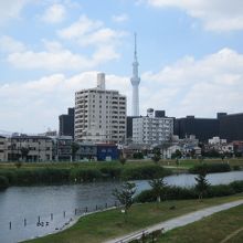 江東区と江戸川区の境となる川です。東京湾河口からしばらくは荒川と並行していますが、江東新橋付近からは大きく蛇行してゆったり流れ、昔の面影を残したのんびりした雰囲気があります。川沿いには遊歩道や桜並木が美しい公園があり市民の憩いの場となっており、休日には川でカヌーを楽しむ姿も見られます。江東新橋からのスカイツリーの眺めも綺麗です。