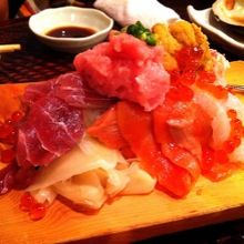 海産物は刺身のほか、テーブルで浜焼を堪能することもできます。