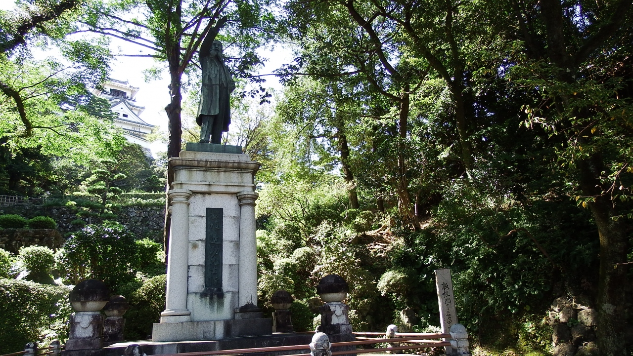 高知城の追手門をくぐれば、自由民権運動の親分に会うことができる。坂本龍馬や武市半平太たちは下級武士だったが、板垣(乾)や後藤象二郎たち上士の働きが幕末も煮詰まってからは大きかったのである。像は木陰にあるので表情が見にくい。