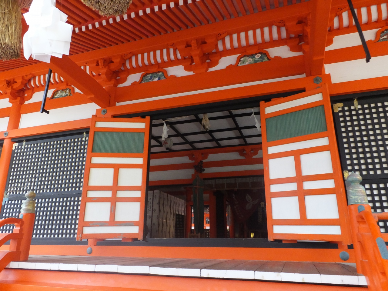 日御碕灯台から出雲市内への道から,少し入ったところにあります。そんなに遠く離れてはいないのでちょっと立ち寄ってもそんなに時間をとらないと思います。神社は朱塗りで,存在感を示しています。駐車場のスペースはそんなに多くはありませんが,ゴールデンウィークに行っても車を止めることができました。