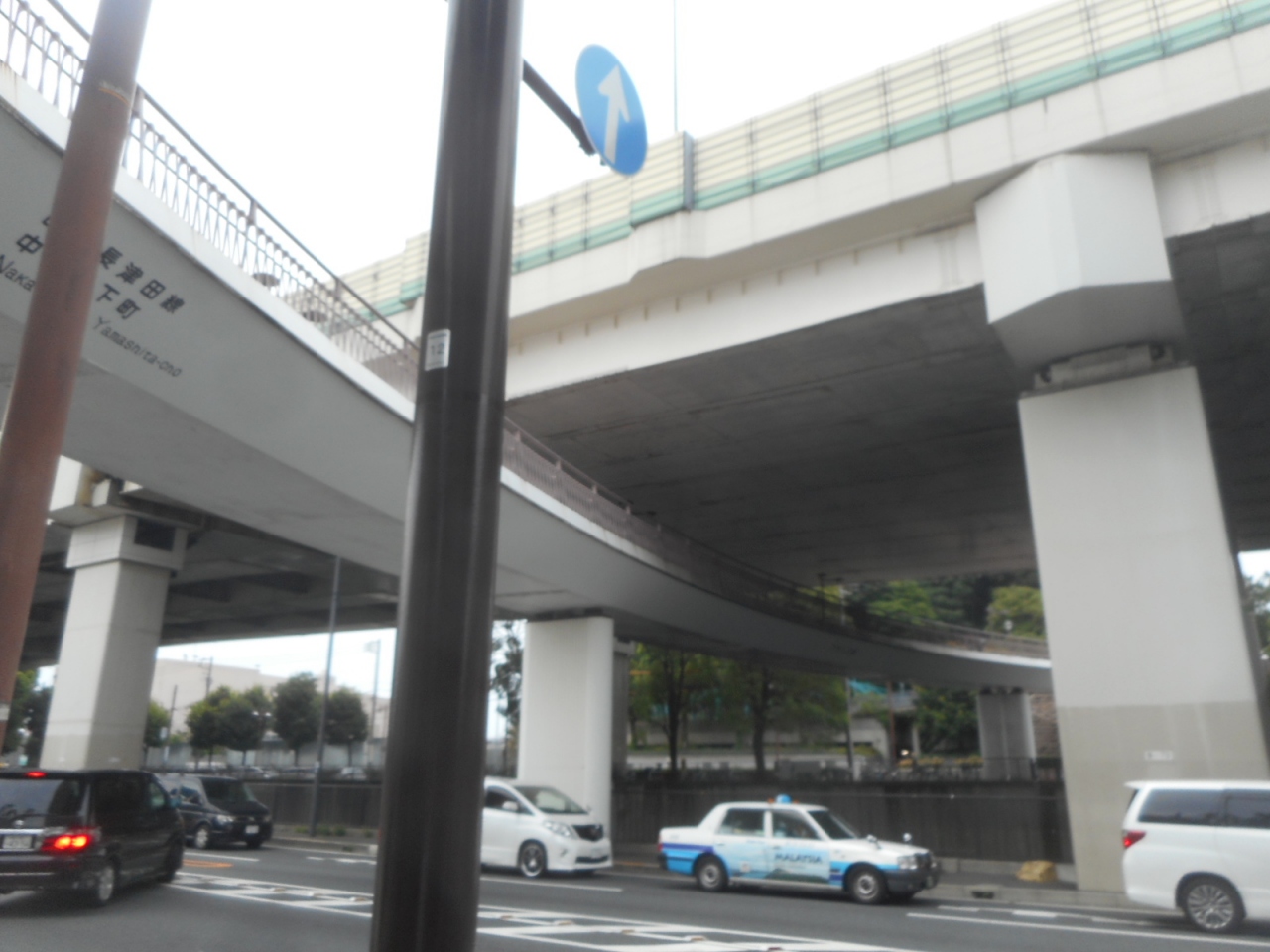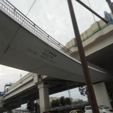 首都高速神奈川3号狩場線とその下を走る一般道の間を通るような歩道橋です。