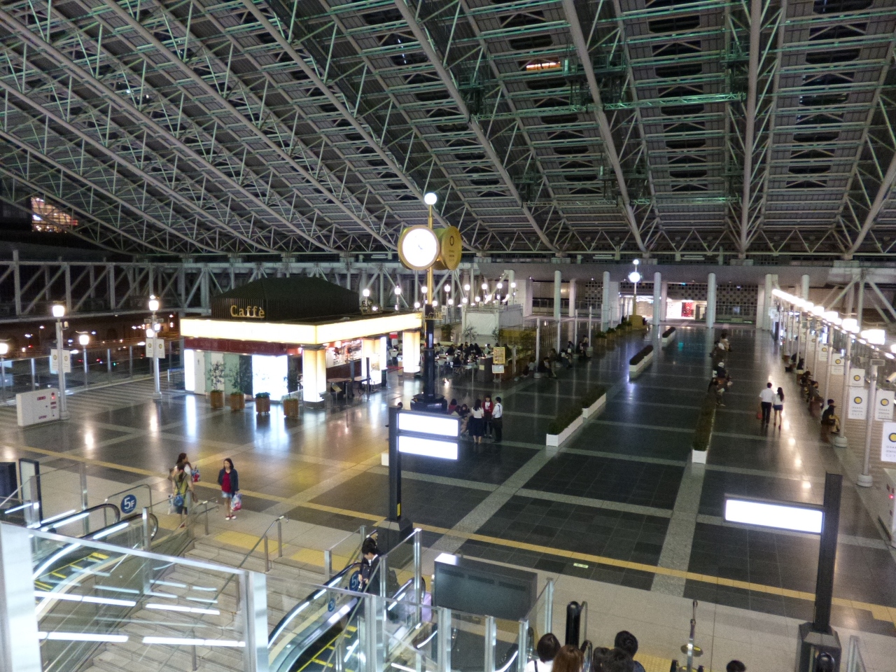グランフロントからの帰り、駅の上の方を見上げると時の広場と書かれていました。エスカレーターで上がってみると、線路をまたぐ、連絡通路が広場になっていて、時計が置かれていました。線路を見渡せる位置にベンチも置かれていて、行き来する電車を見ながら時を感じられます。