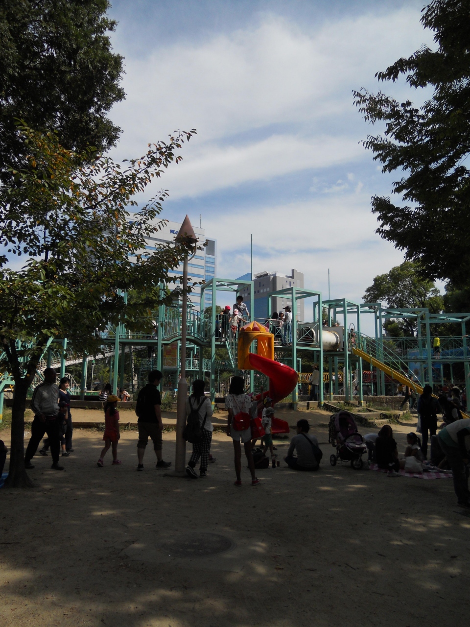 初めての大阪城訪問の際、地下鉄「森ノ宮」駅で下車して向かいましたが、一番最初にこちらの公園のところに出ました。遊具などもあって、お子さん連れのファミリーでにぎわっていました。
