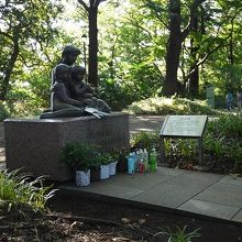 昭和52年(1977年)9月に米軍の軍用機が墜落その事故で母子3人が犠牲になりました。子供達は翌日に亡くなり母親は4年余りの入院後亡くなりました。生前海が見たいとの願っていた事からこの公園に母子像を設置されました当初碑文を付けないのが条件でしたので何のための像だか解らないままでしたが、事故から29年目に碑文が取り付けられたそうです。