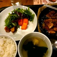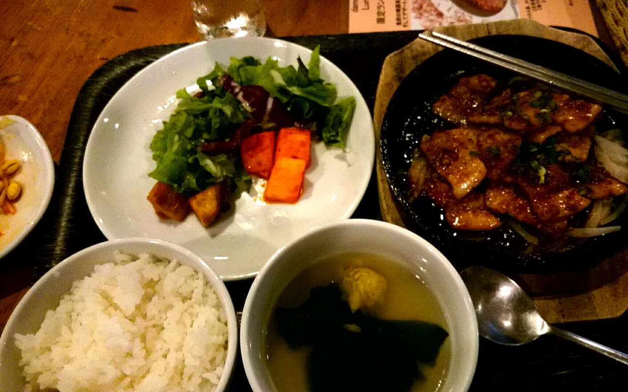 ランチセットだとキムチやナムル(この日は7種類ありました)が食べ放題でついてきます。が、メインの料理のポーションが小さい。副菜のサラダもお皿がスカスカでびっくりです、何か盛り忘れてるのではないかと思ったほど。