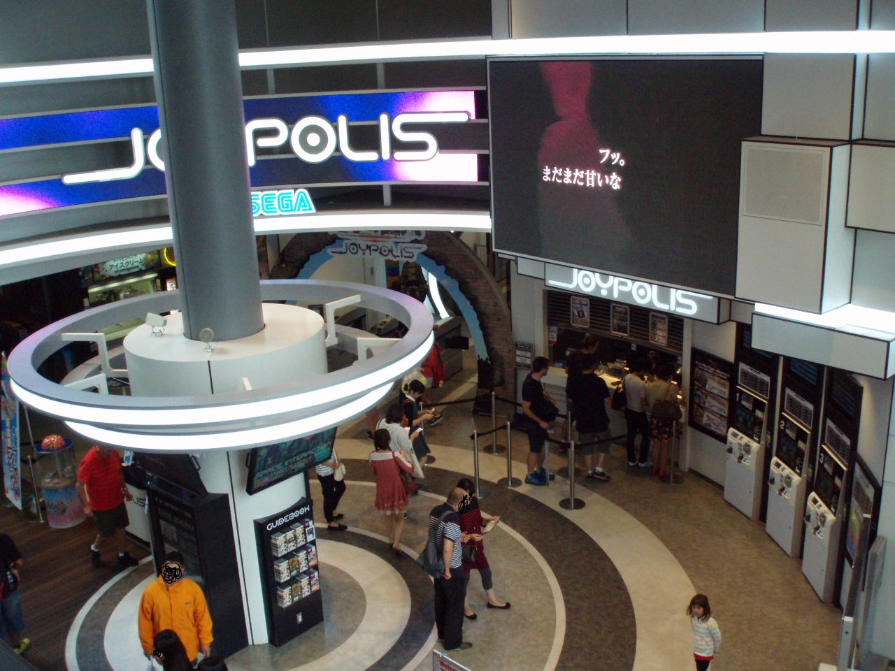 ゆりかもめお台場海浜公園駅と台場駅の中間ぐらいにあるデックス東京ビーチの3階から5階にあるゲーム会社のセガが運営する屋内型アトラクションの東京ジョイポリスはあります。東京ジョイポリスは屋内型遊園地ですがスリルリングなアトラクションが多く迫力あります。時間がなかったので乗り放題のパスポートは止め入場券だけを選択しました。アトラクションはハーフパイプトーキョーお奨めです。