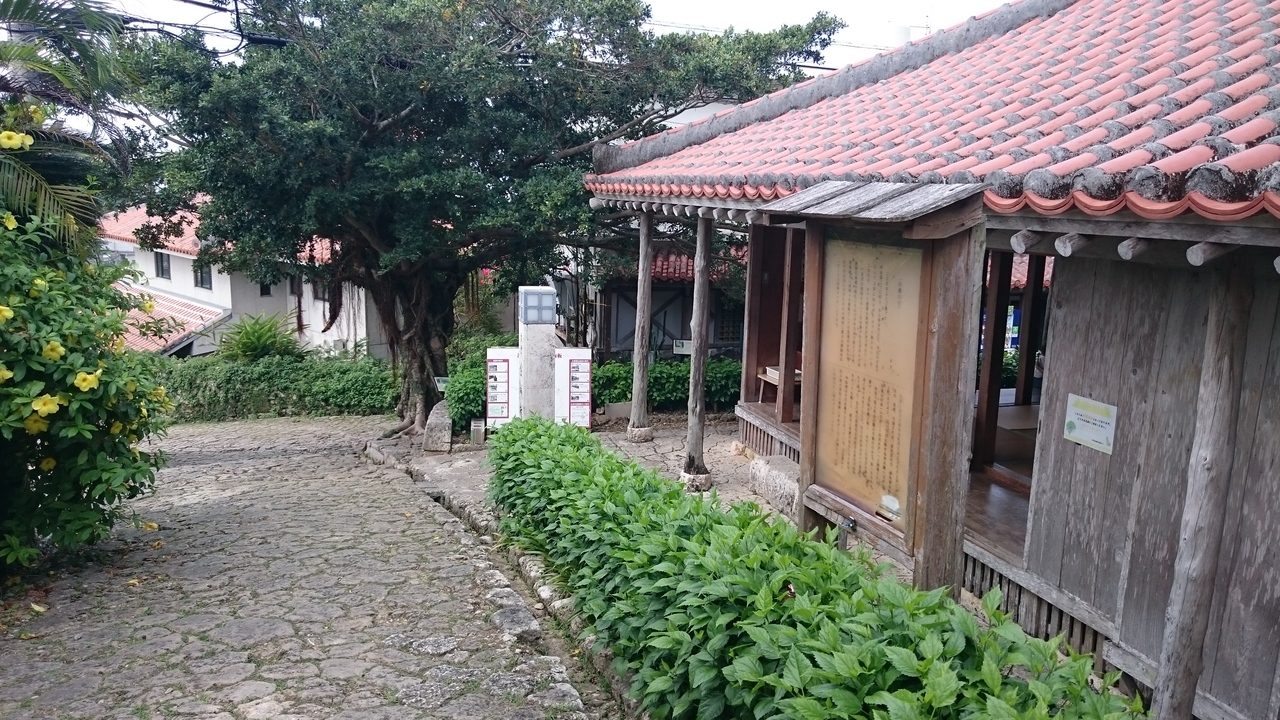 道の途中に赤瓦屋根の無料休憩所があるので、歩き疲れた時はそちらで休憩するのも◎