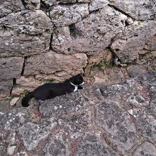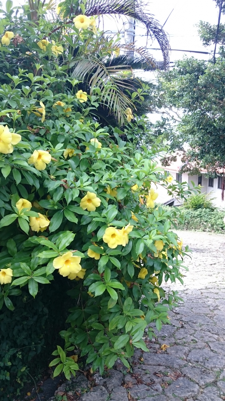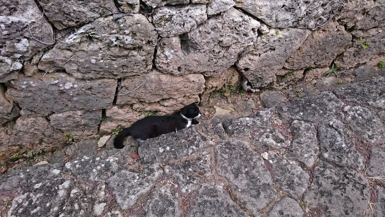 石畳沿いのお宅のキレイな花や、涼んでいるネコが、気持ちを癒してくれます。