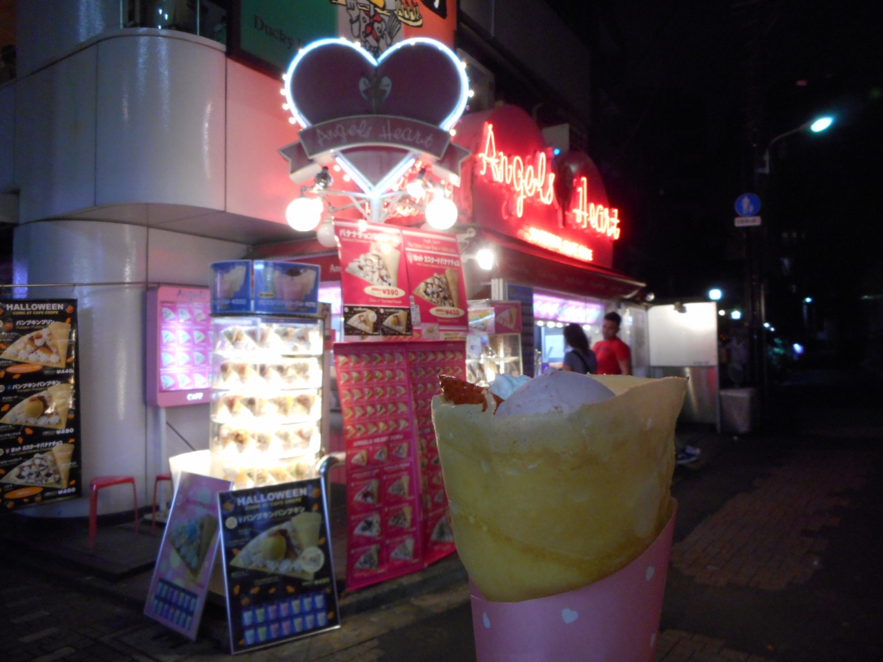 当然ながら、約350メートルの通り沿いには、若者向けのファッションや雑貨店が並ぶほか、とても多くのクレープ屋が立ち並んでいました。