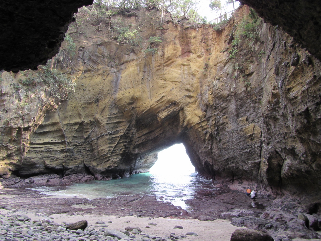 ここは海の浸食によってできた洞窟で浸食の方向が2つあることから二穴とも呼ばれる。