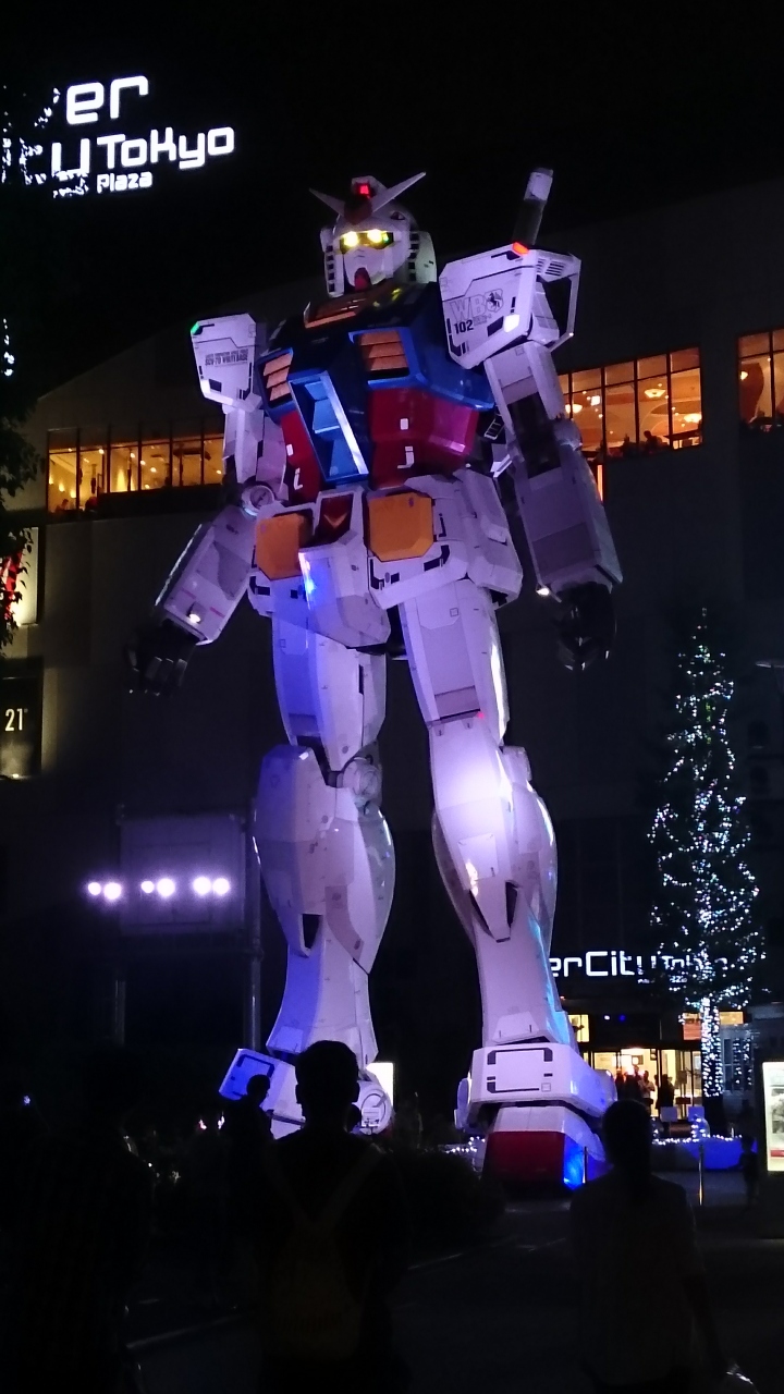 建物の外に立っているガンダムを目当てに多くの人が訪れます。中には外国人観光客たちも多く、たくさん写真を撮っていました。定期的に建物の外壁とガンダムが連動したショーが上映されており、そのときには多くの人がカメラで撮影をしますので、よい場所を確保したければ、お早めに。