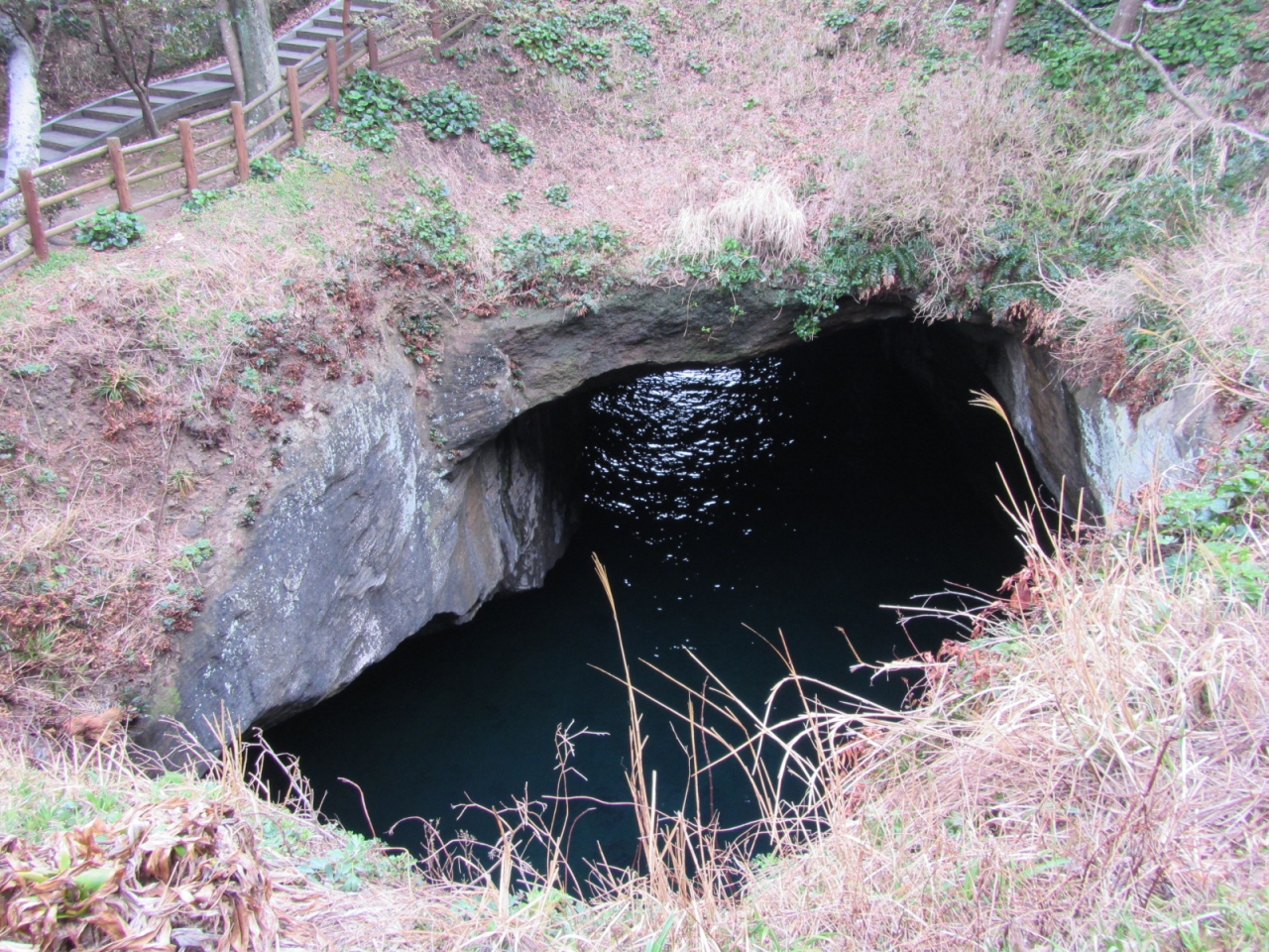 そして天窓洞。浸食によってできた洞窟の天井が丸く開いていて、そこらか見える海は幻想的である。