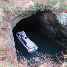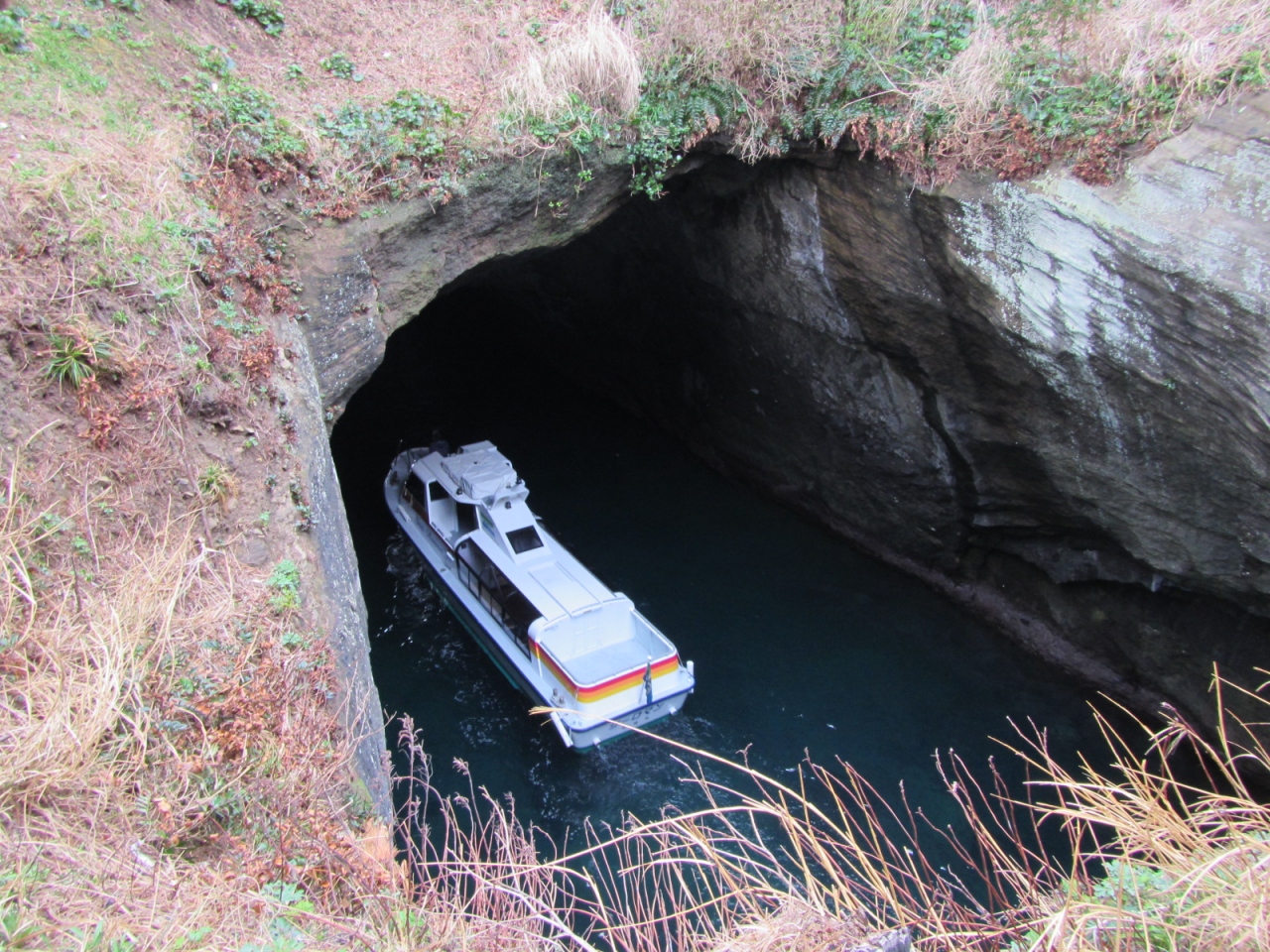 近くから堂ヶ島洞くつめぐり遊覧船が定期的に出ていて、この下から天窓を見ることができる。