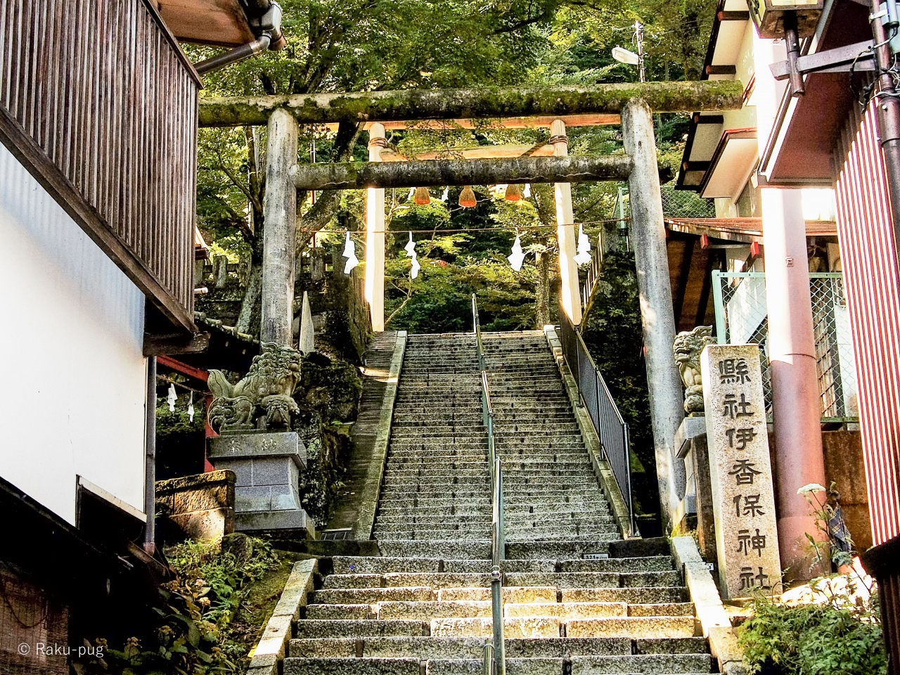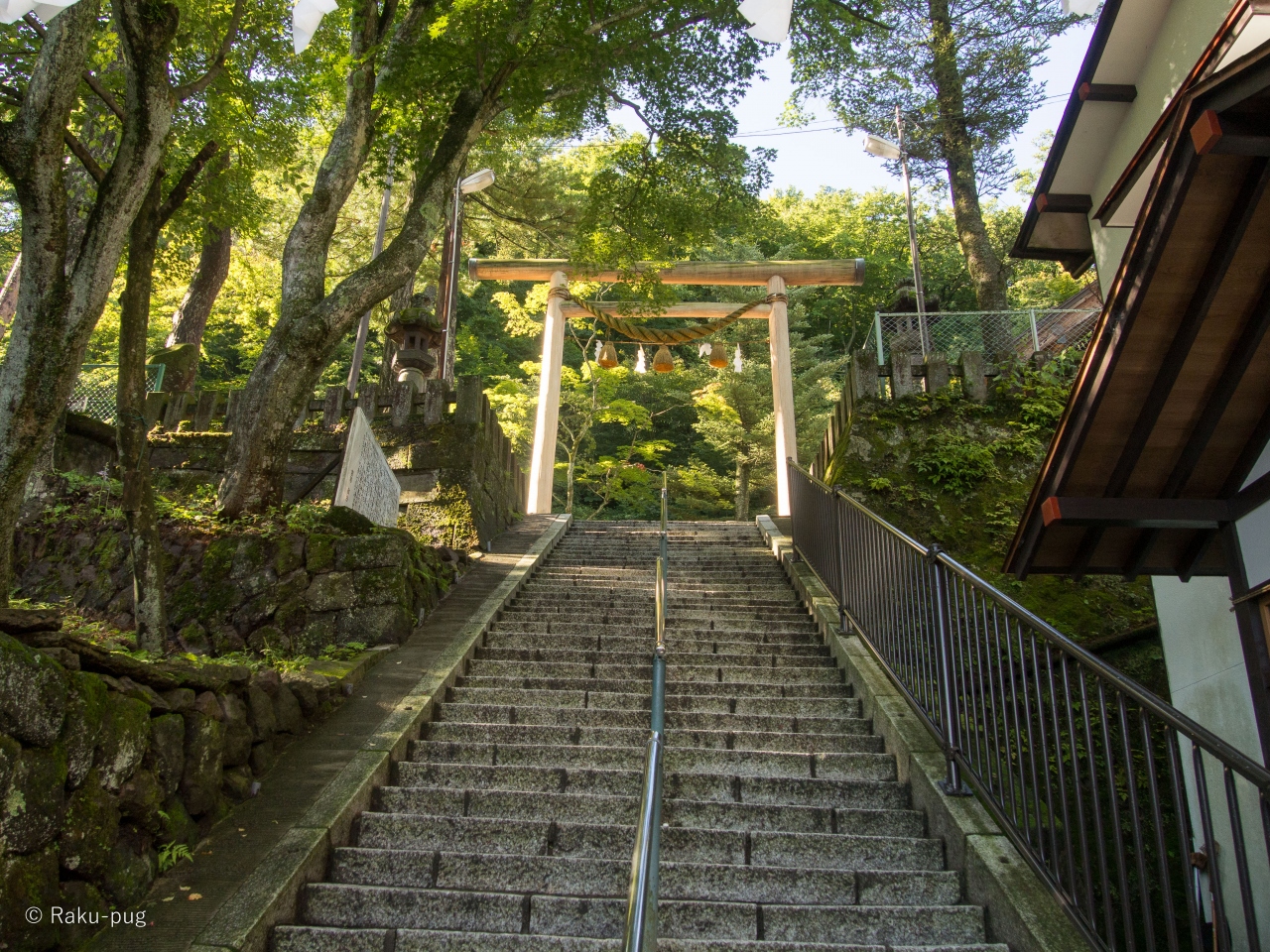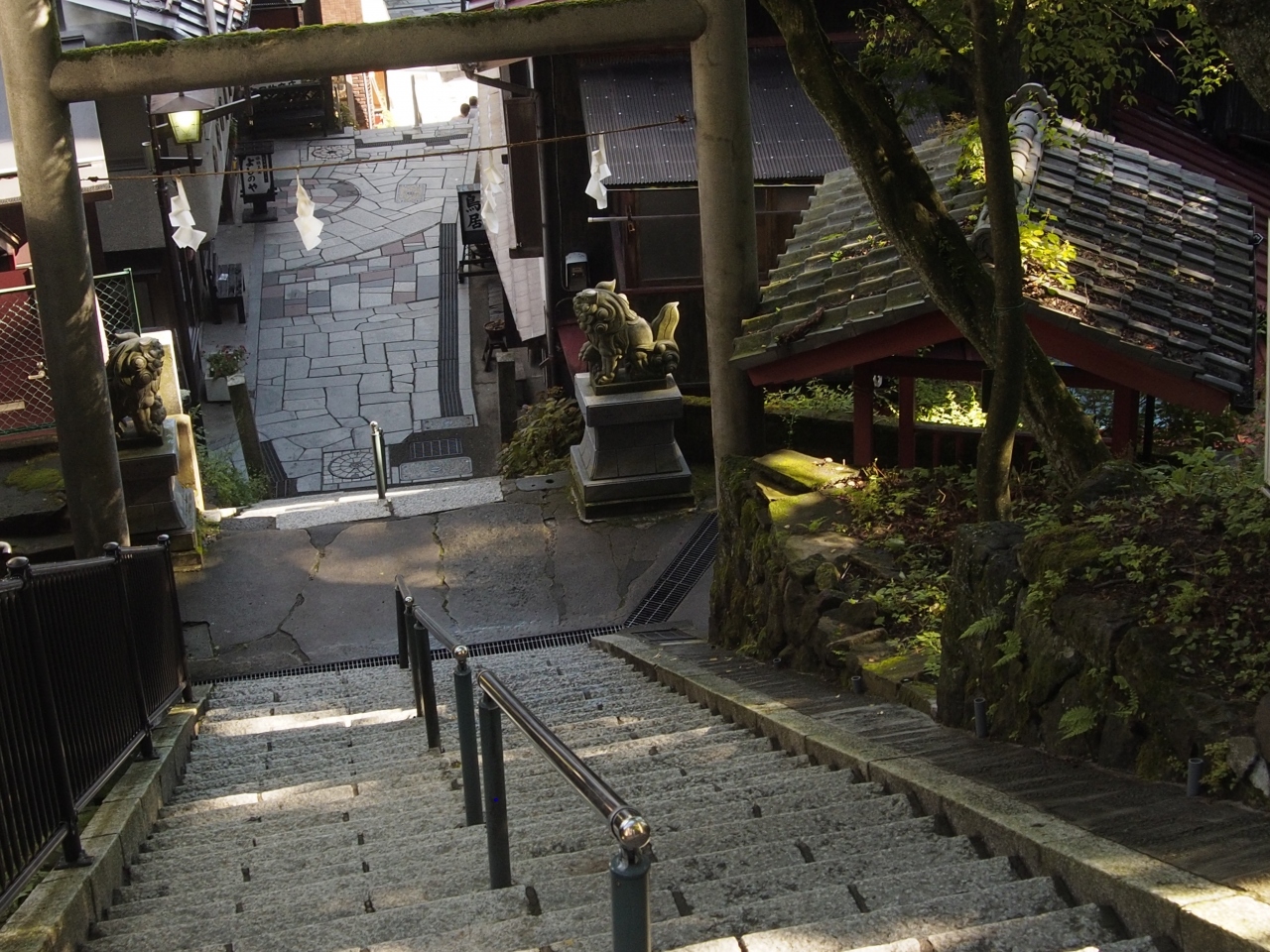 階段から見る 伊香保神社は 歴史も感じられ