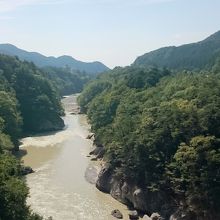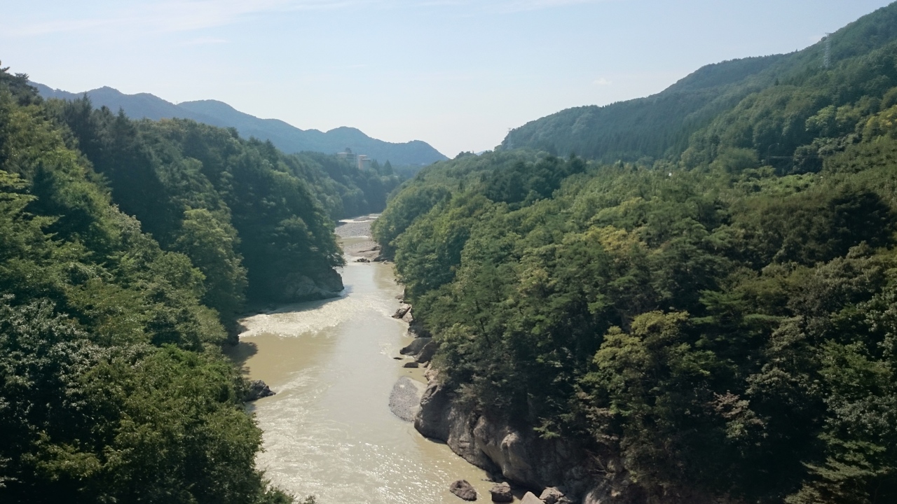 鬼怒川に面した客室やレストランであれば鬼怒川の雰囲気を楽しめますが、そういう場所ばかりではない。ここは鬼怒川の流れを高い場所から眺められる素敵な場所です。吊橋なので意外と揺れますが。15年9月現在、大雨の影響で橋を渡った先の遊歩道は通行止めでした。