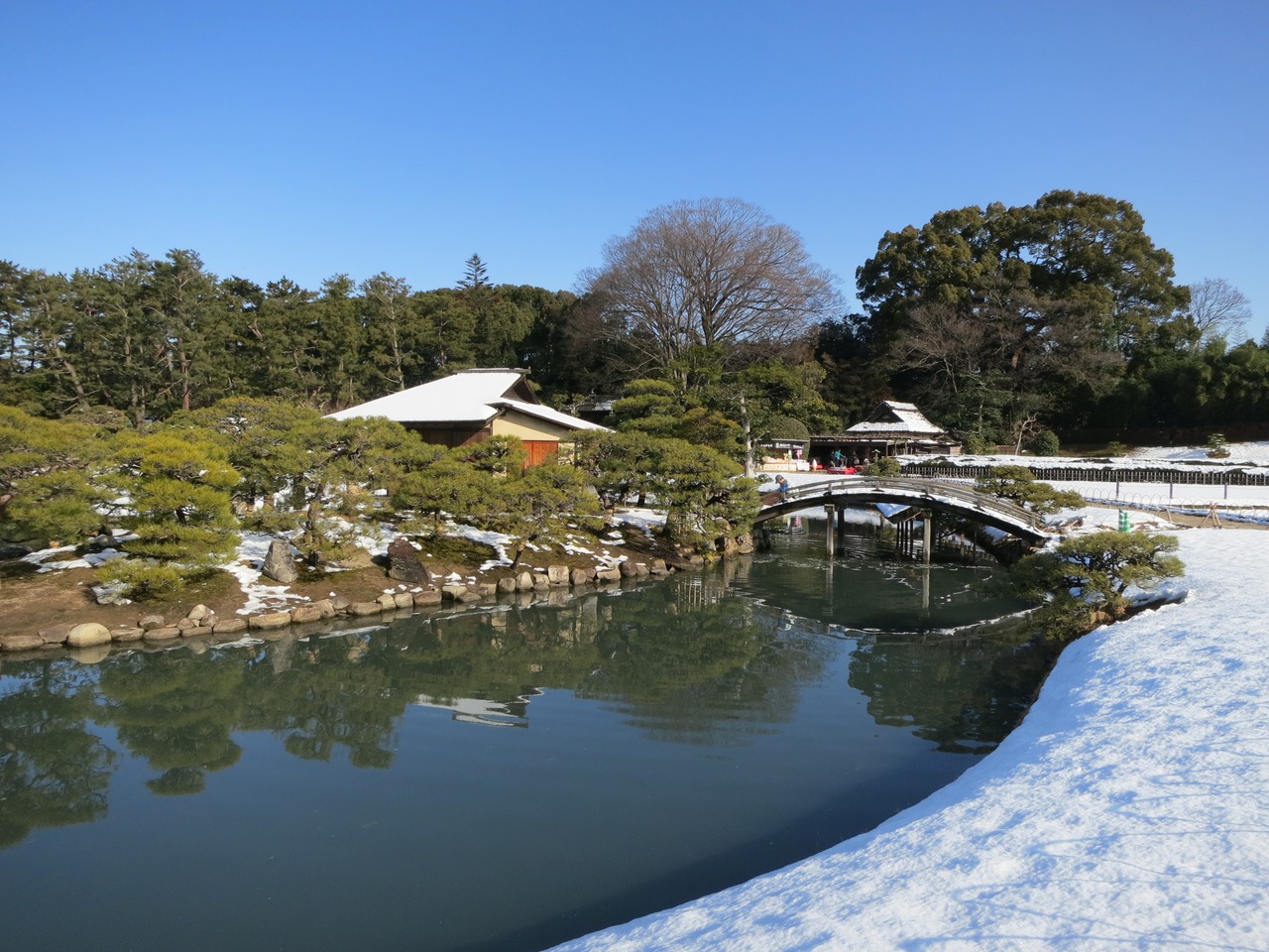 香川旅行でまさかの雪に遭遇。ジェットスターが飛ばなくなってしまい、1日余裕ができたので、思い切って瀬戸内海を渡って岡山の宿を取りました。翌朝、後楽園と岡山城へ。数年振りという雪景色で地元のカメラファンで賑わっていました。珍しい雪景色に感動です。