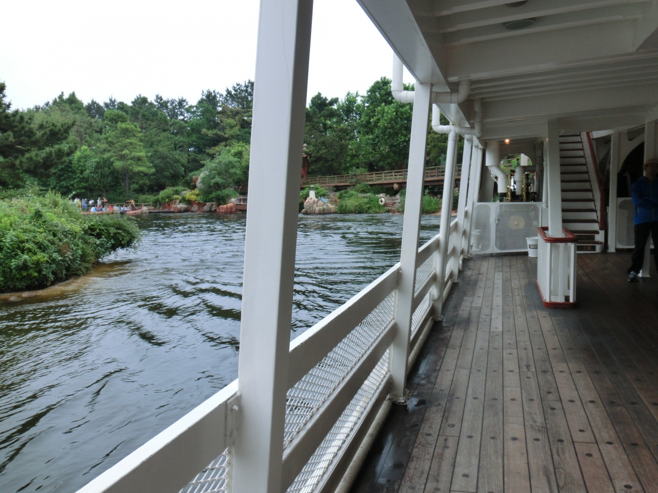 大きな蒸気船に乗って、ディズニーランドの景色をのんびりと眺めながら周ることができます。