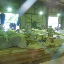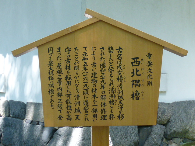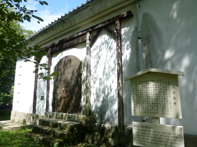 名古屋城内は、西之丸エリア、御深井丸エリア、本丸エリア、二之丸エリアの四つのエリアに分かれています。正門から入って西之丸エリアを見学し北方向にある御深井エリアの西北隅櫓にきています。散策順路としてこのコースが多いようです。ここには一般公開されている本丸を修復する材木の加工場があります。ご覧になってください。火薬庫として建てられた乃木倉庫もあります。次は御深井丸展示館を覗いてみます。