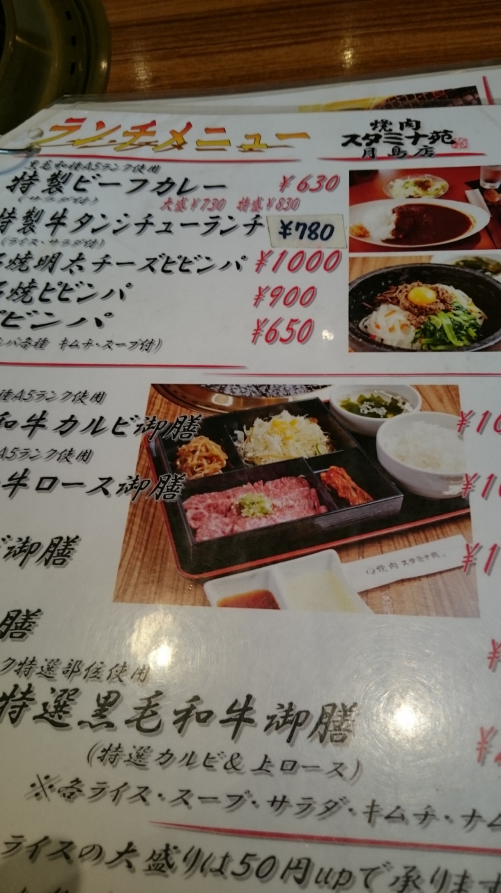 ランチメニューが割安の焼肉店。月島駅、もんじゃストリート側から、出て、直ぐ。ランチは、600円台から、メニューがあり、焼肉でも1000円前後。ランクの高い牛肉が、割安で食べられる。焼肉テーブル席のため、焼肉以外なら、ゆったり、食べられる。