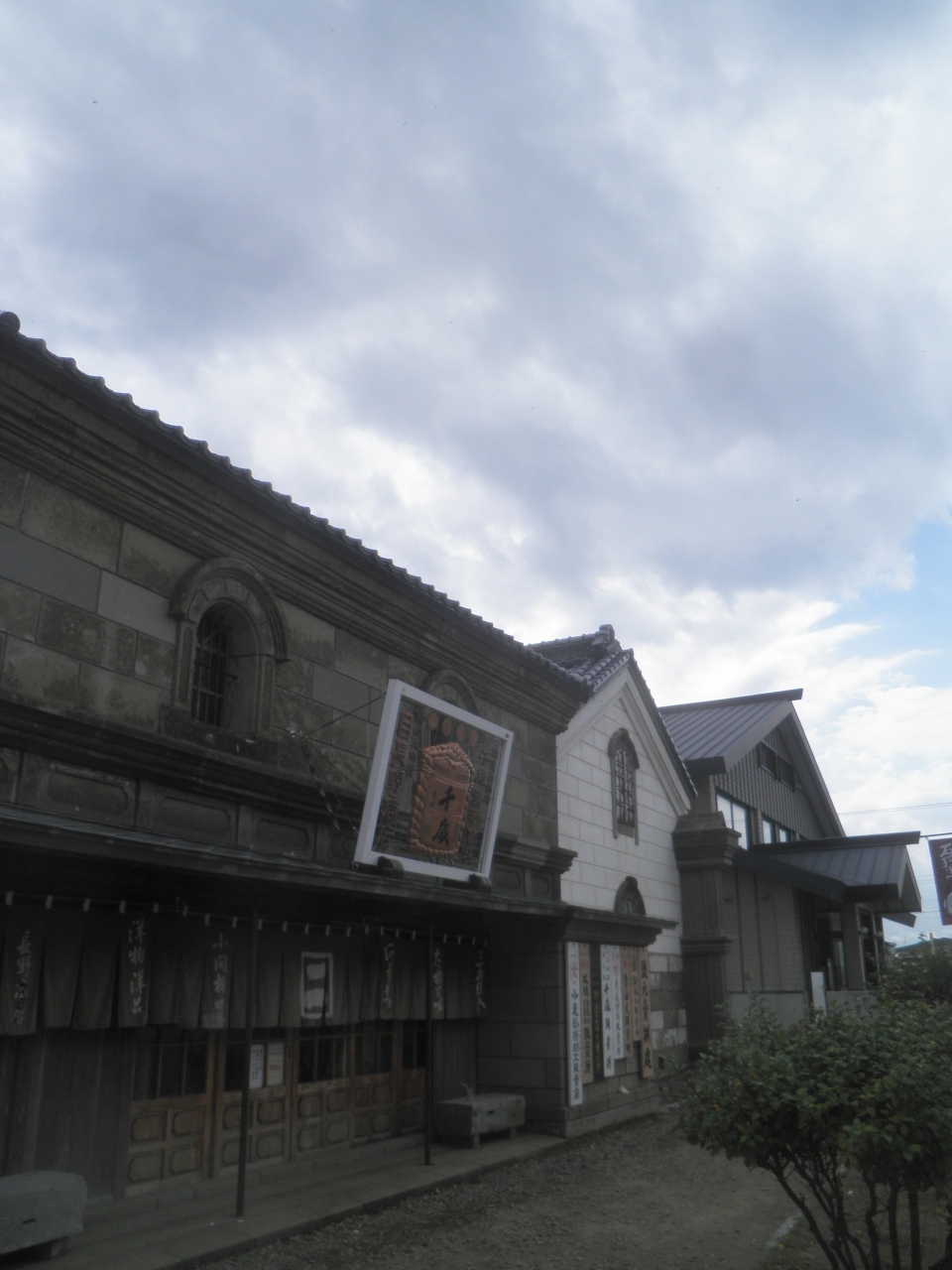 札幌郊外の石狩で開催された石狩さけまつりにドライブで行きました。 石狩海水浴場近くの歴史地区が会場で、旧長野商店の建物もあります。 ちょうど、お祭りステージの近くだったのでにぎやかな感じでした。 石造りのがっちりした建物で蔵もあります。 看板がユニークでした。