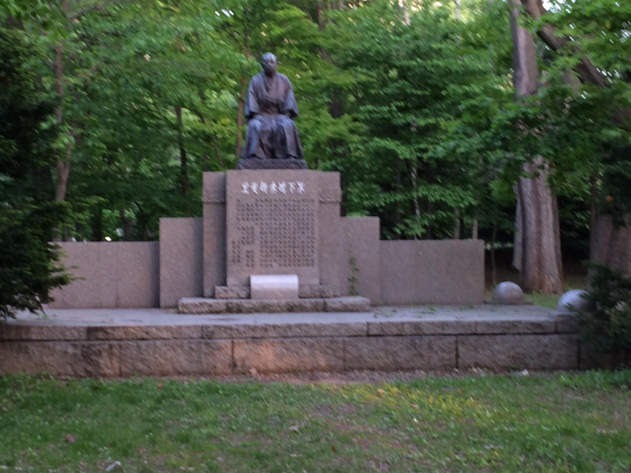 中島公園の豊かな緑の中にあるので、遠くからでは目立ちませんが、像を伴う碑の大きさから、いかに慕われていたのかわかります。