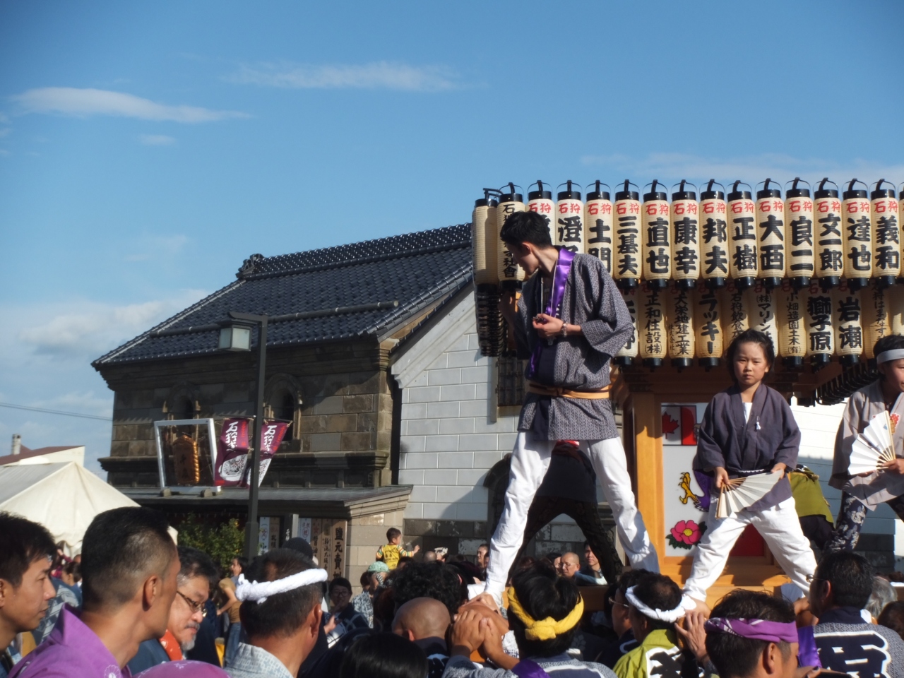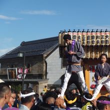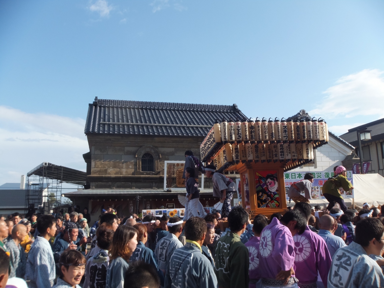 戸板一枚隔てた外は神輿も出て、人でいっぱいです。