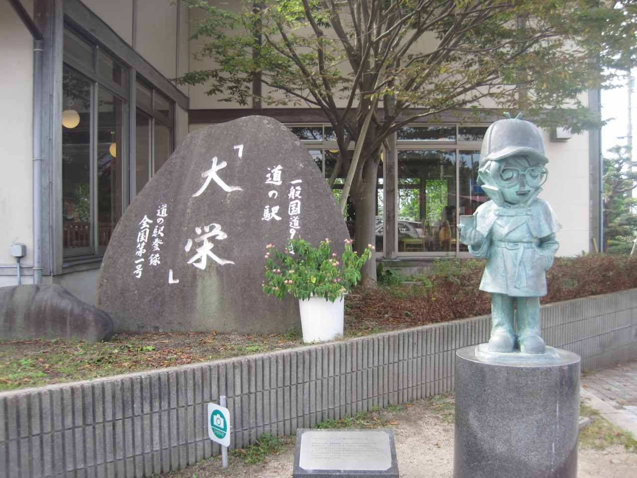 コナンくんのブロンズ像が迎えてくれ、「青山剛昌ふるさと館」に隣接した道の駅です。新鮮な野菜や名産品などが売られています。私が行った時間は少し遅かったのですが、開店直後に行けば種類も豊富とのことです。夏場はスイカが有名です。