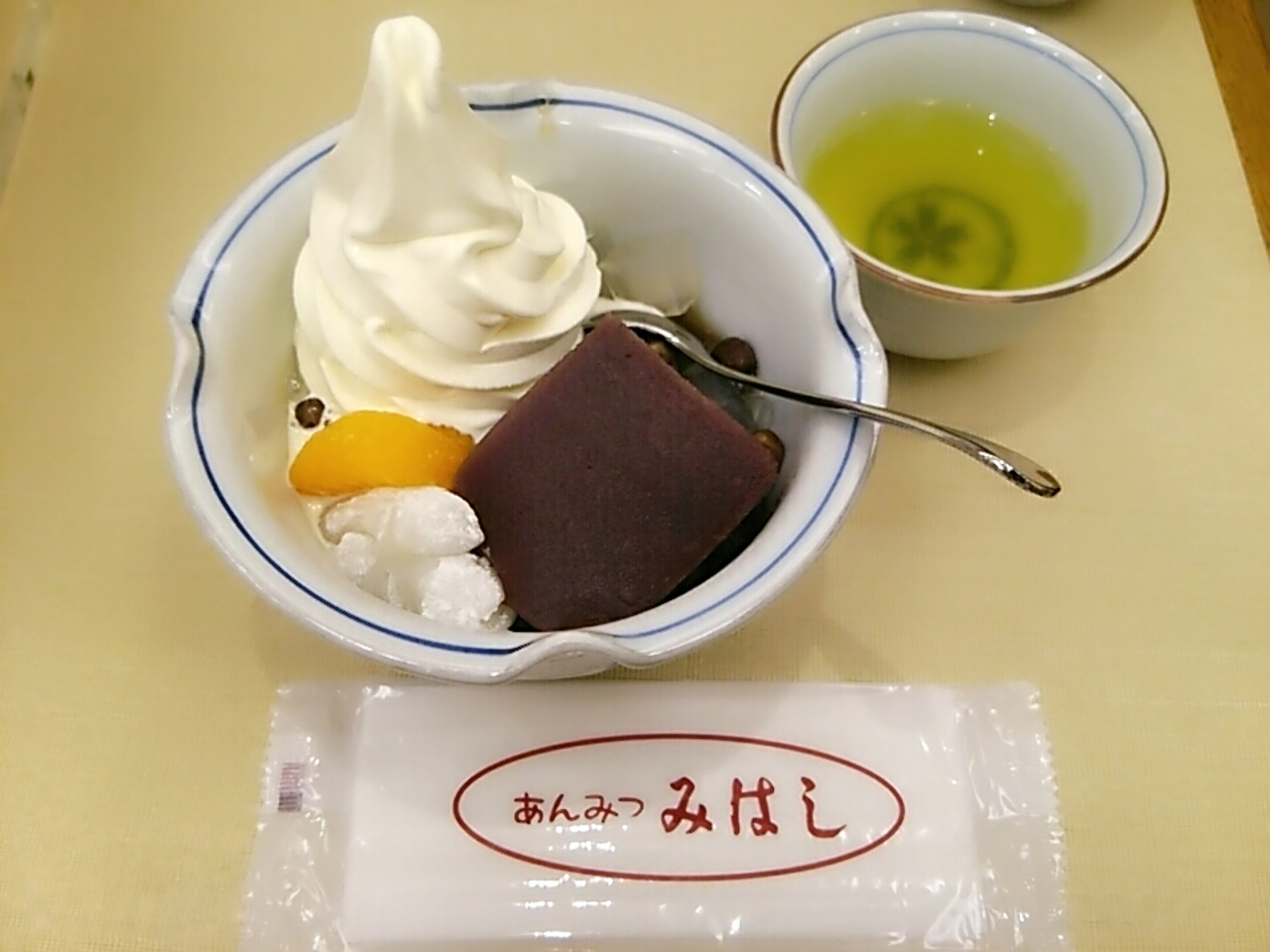 混み混みな構内を歩いていると可愛らしいお店が見つかり入店いたしました。和風のスイーツがメニューにあり、お冷やの代わりに温かい緑茶を頂けます。(しかも、空になる度に新しくくんでくれるとは!)おやつの方はあんみつを頂きましたが、温かい緑茶と共に食べ進めると、甘くてもあっさりと完食することができました!また行きたいです。