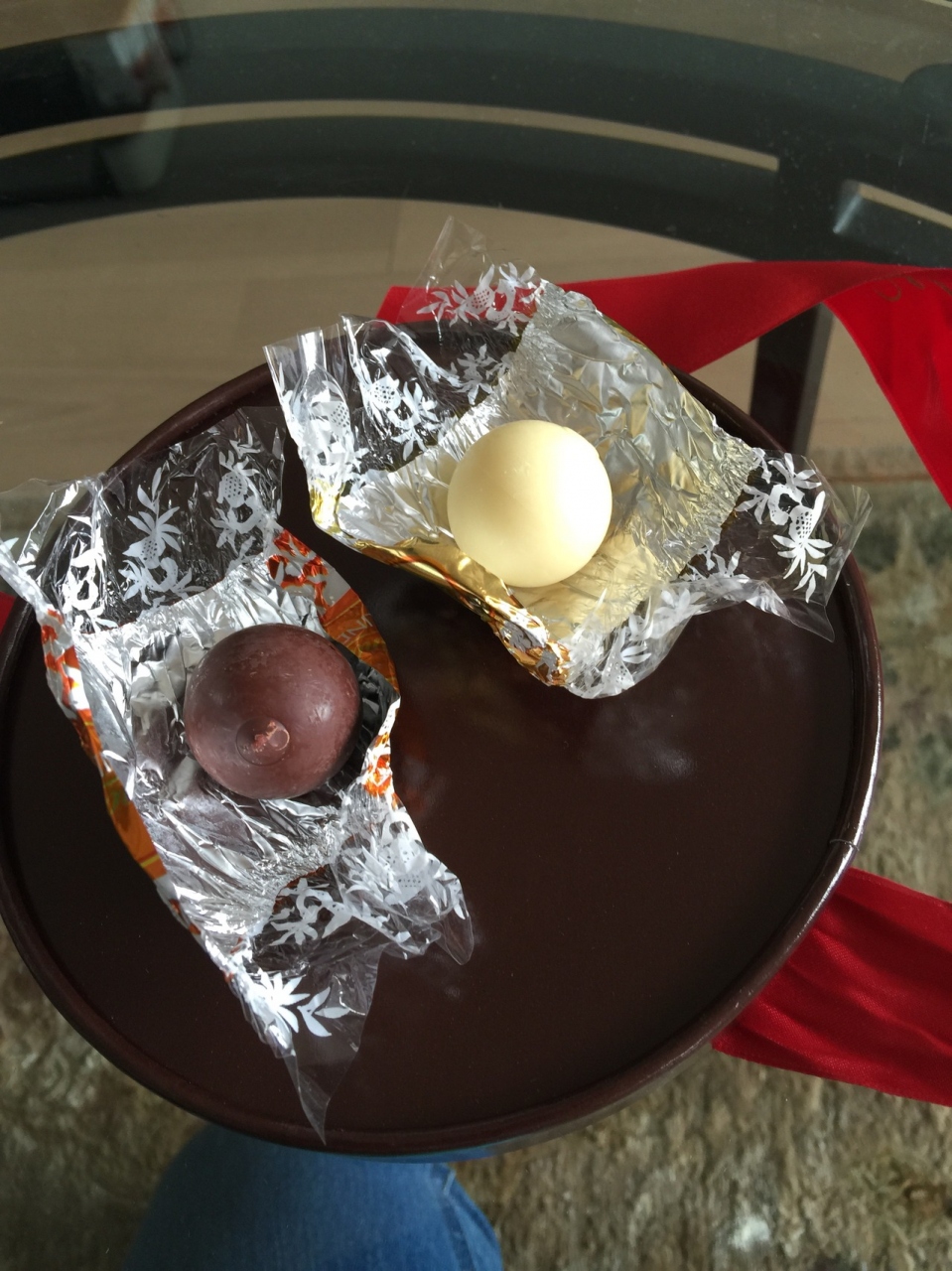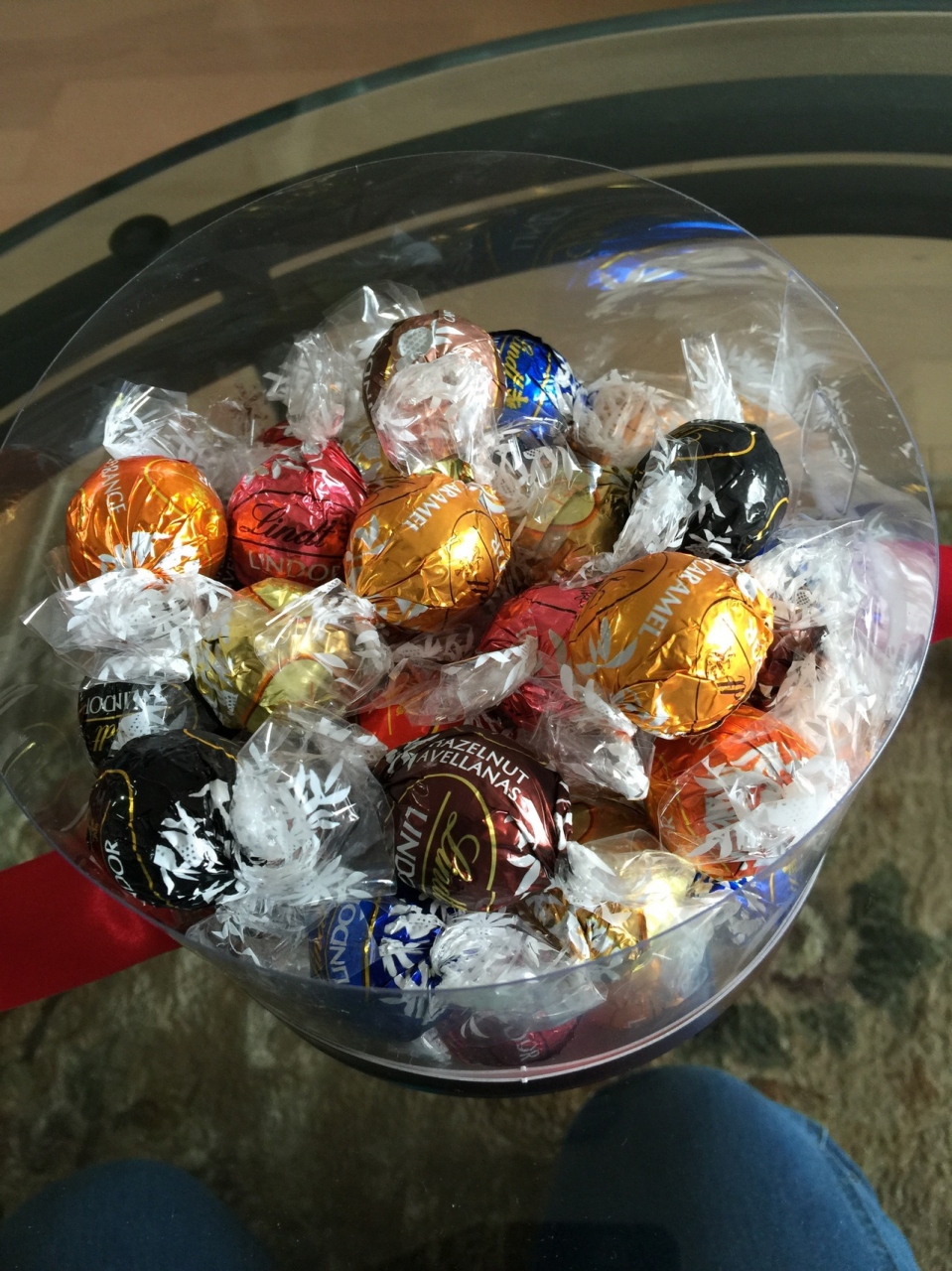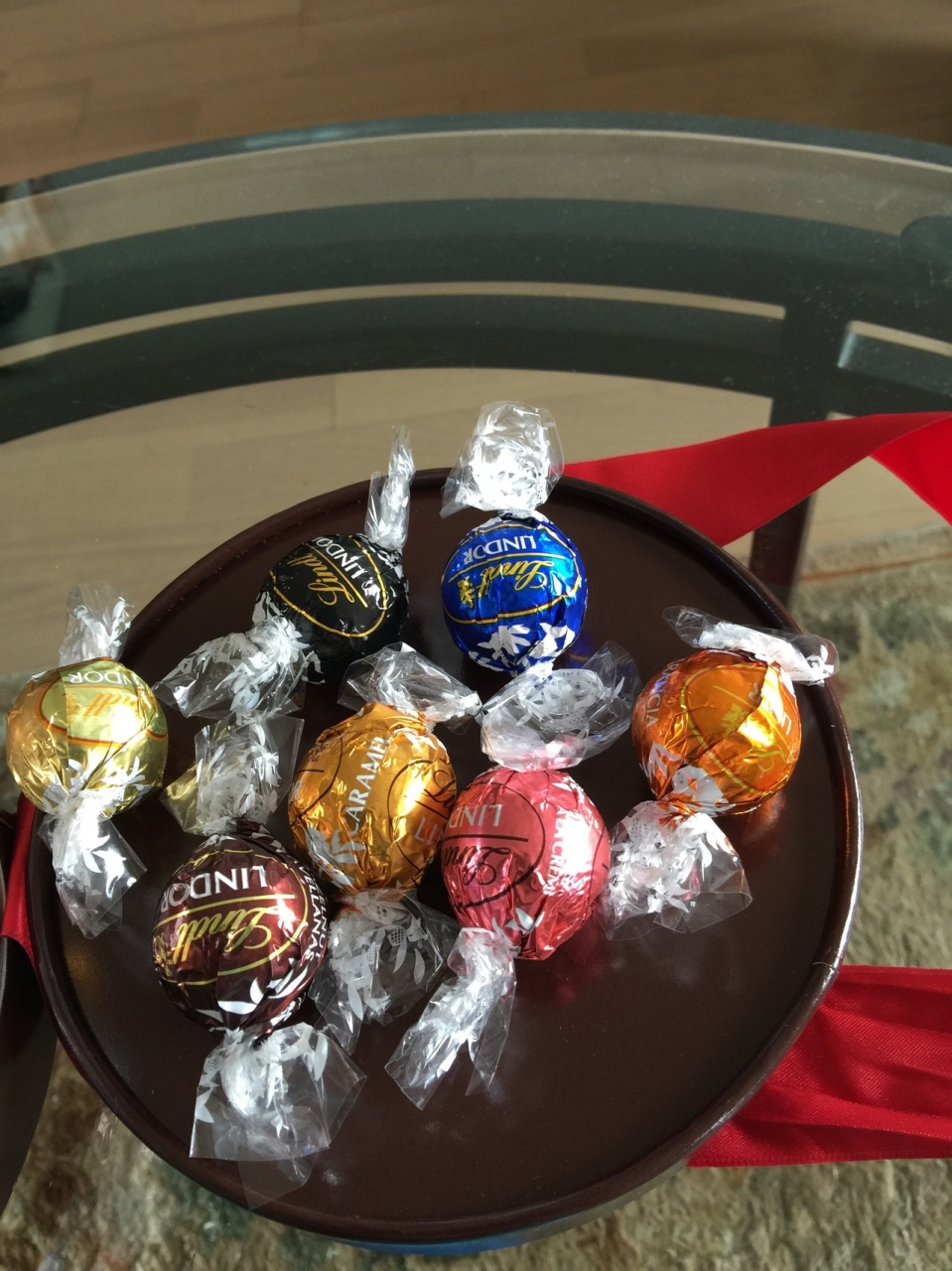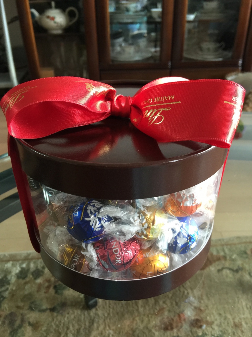 リンドール50個入りチョコレートプレゼントにいただきました\(^o^)/ありがとうございます。9種類の大粒チョコレートすごく美味しいです。海外旅行に行った時、免税店でよく買ってましたが、50個入りは自分では買わないので、頂くと、とても嬉しいですね。口の中でとろける感じがあとを引きます。2種類のホワイトチョコのと、ブラックチョコ、ミルクチョコと、9種類あるので、充分楽しめます。私も誰かの贈り物にあげようかな~と思案中です。