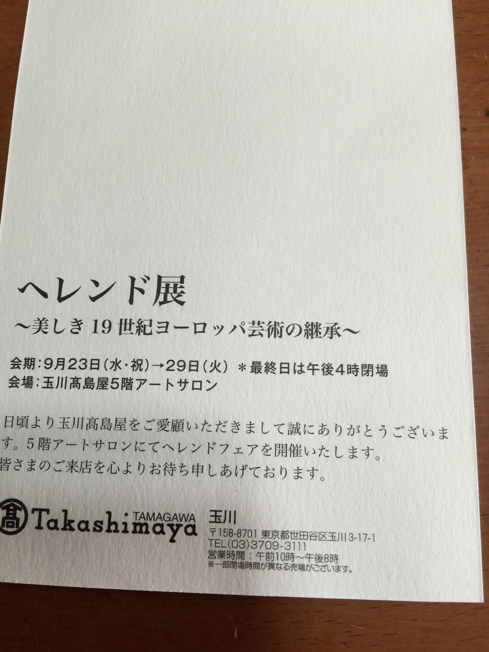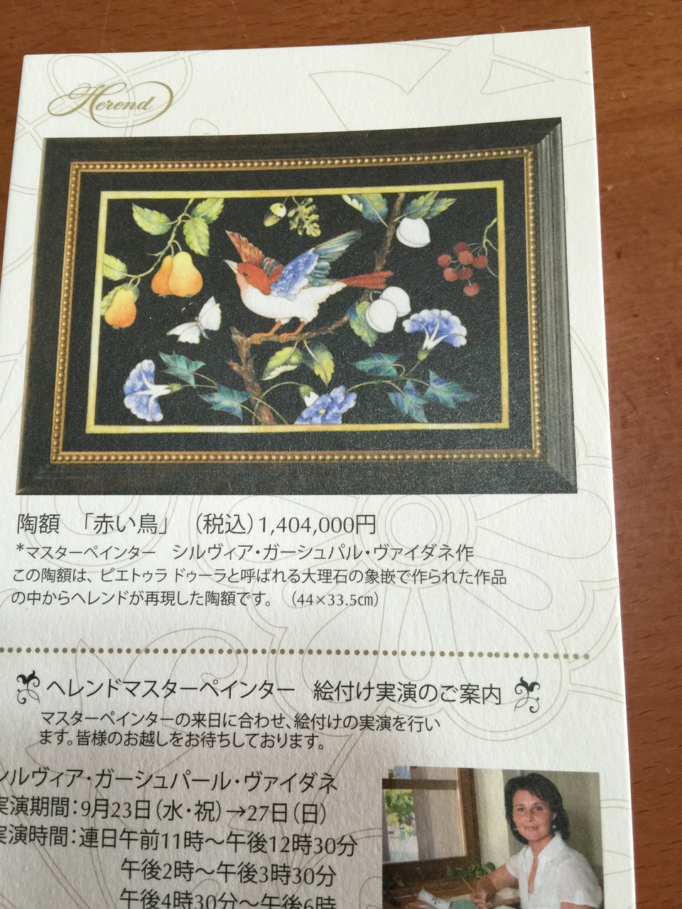 9/27日 玉川高島屋 5階 アートサロンにて、ヘレンド展をやっていたので、行ってきました。マイスターの方が、シノワズリの模様をカップに描いていました。