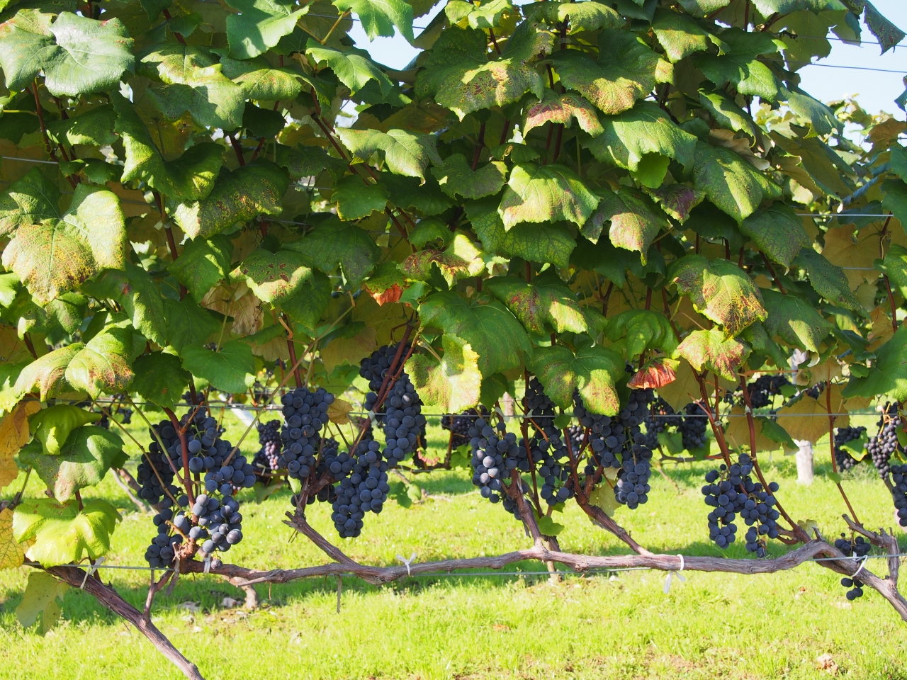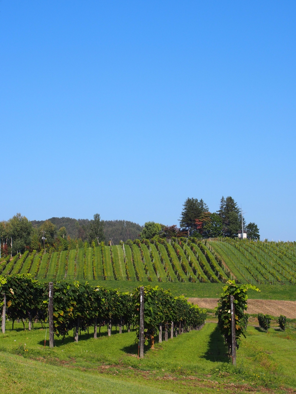 実は 秋のこの時期ワイン用のぶどうがなってきれいな風景が見られるんですよ~
