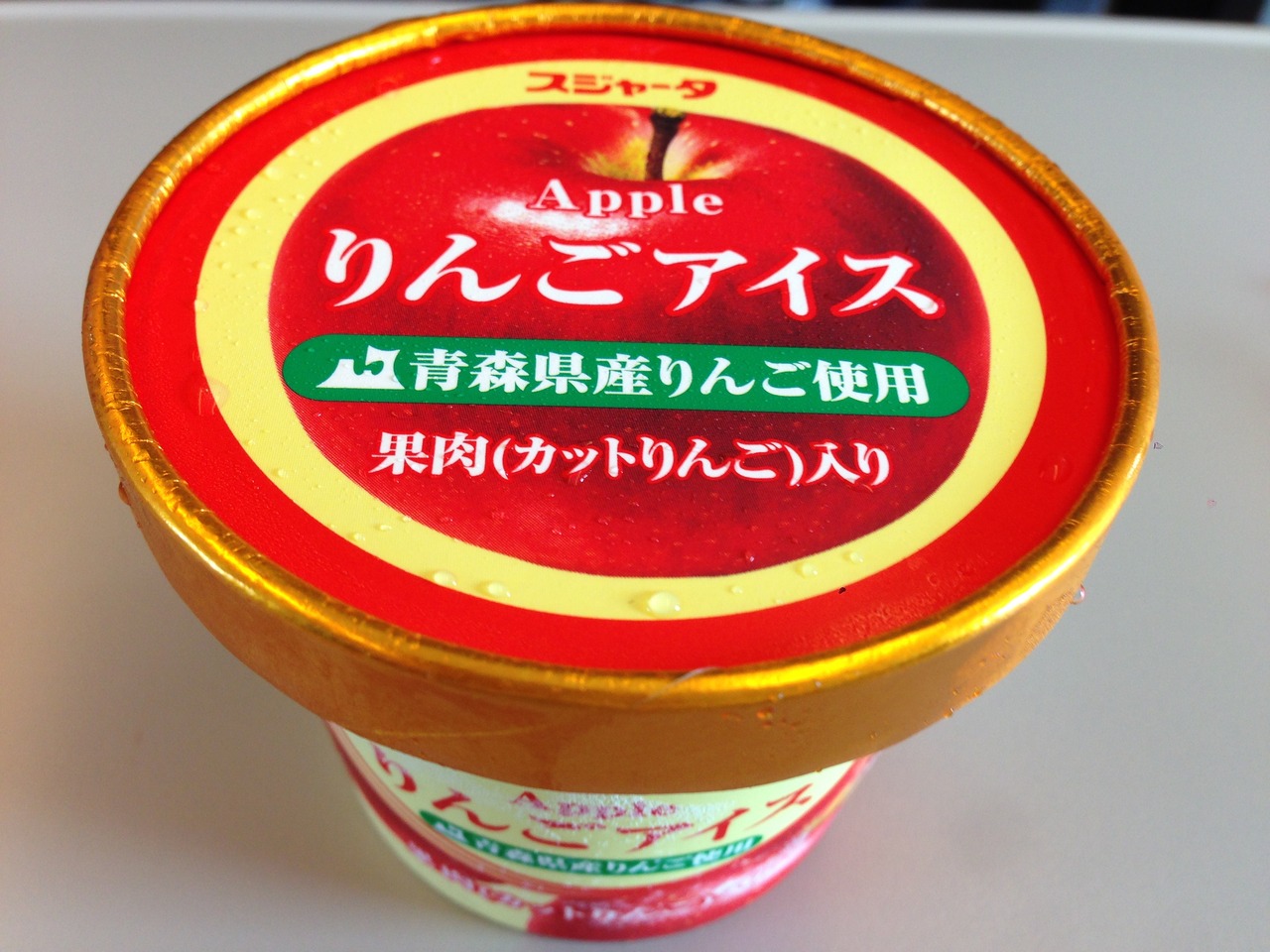新幹線定番のスジャータ社製のアイスは青森産りんごを使用したりんごアイスで、3mm角大きさの果肉が爽やかな味わいでした。