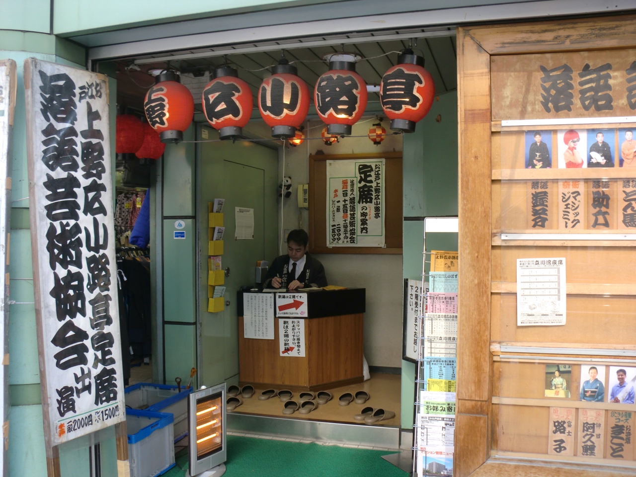 上野松坂屋に広小路通りをはさんで正面にあり、わかりやすい場所にある。上野は寄席の発祥の地だそうで、近くの鈴本とならんでメッカとなっている。こじんまりした寄席らしい客席で、定席の落語ばかりでなく、講談、演芸などバリエーションある出し物になっている。
