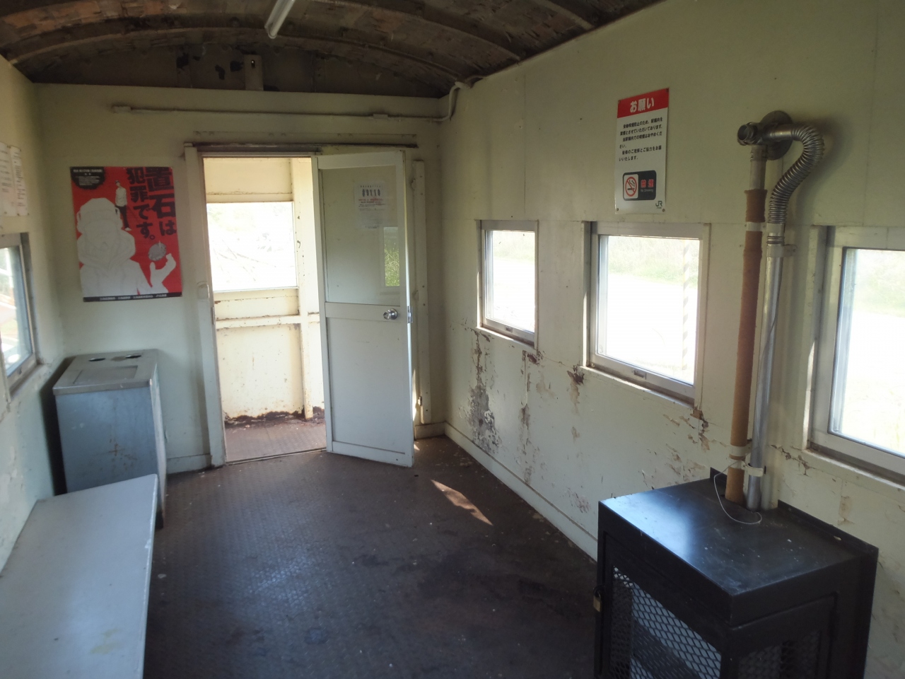 駅舎は古い車掌車がぽつんと置かれていて、内部には待合室と簡易なトイレがあります。
