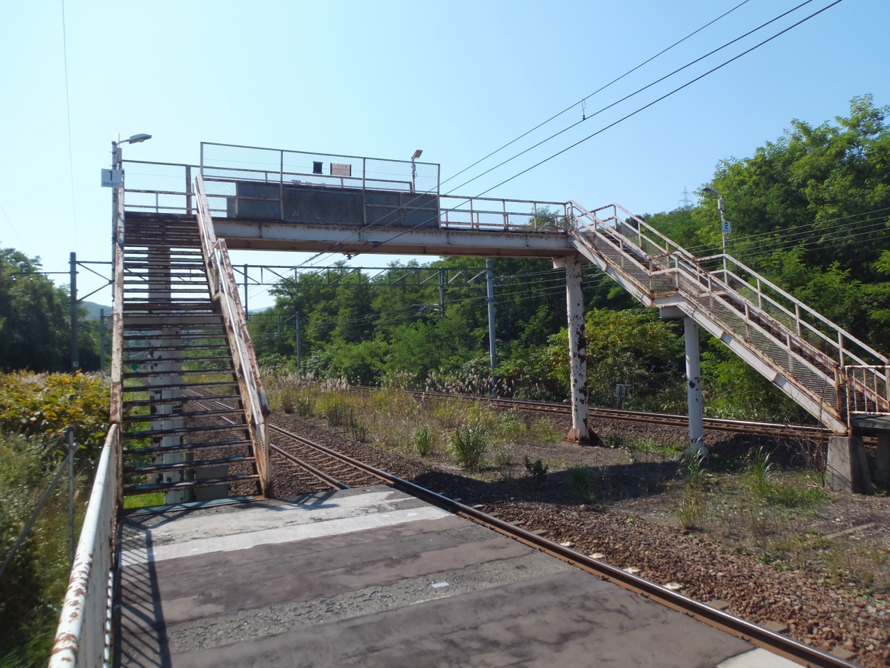勿論、エレベーターなどなく、跨線橋には屋根もありません。