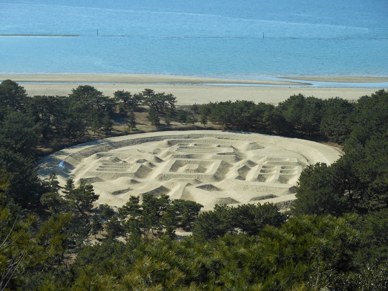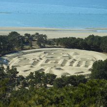 琴弾公園内にある寛永通宝の形をした砂絵。