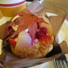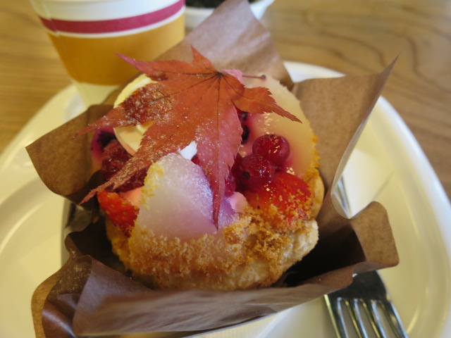 タルトは、秋のフルーツを使ったもので、上に紅葉が載っていて