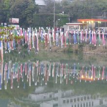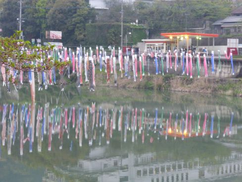 鯉は水の中ではなく川面の何匹も上を泳いでいるのです。こいのぼりが風に揺れている姿はこの地区の人々のおもてなしのこころでもありました。