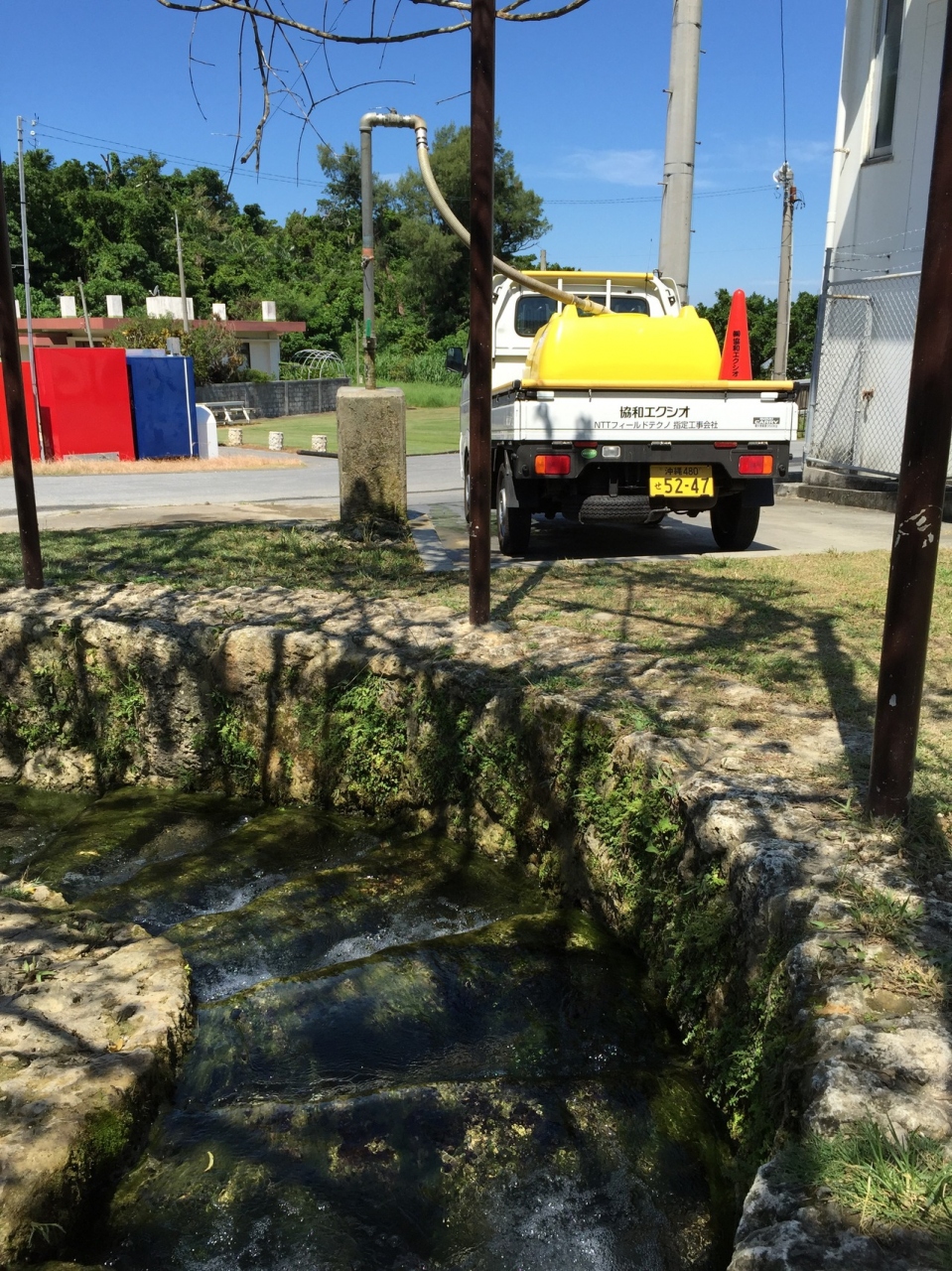 沖縄で海水以外の水に入るというのは、珍しい体験。観光名所というわけではないが、水が豊富に湧き出ている。日本本土ならば、なんかの名水スポットになって観光地にしまうのだろうが、ここ沖縄ではこっそりとある。暑い日中は、近くの子どもたちのいい遊び場。ときどき、農業関係者の人なのか、専用の車で水を汲みにくる。