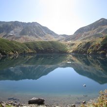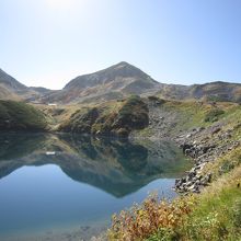 湖面に北アルプスの山々が映る池