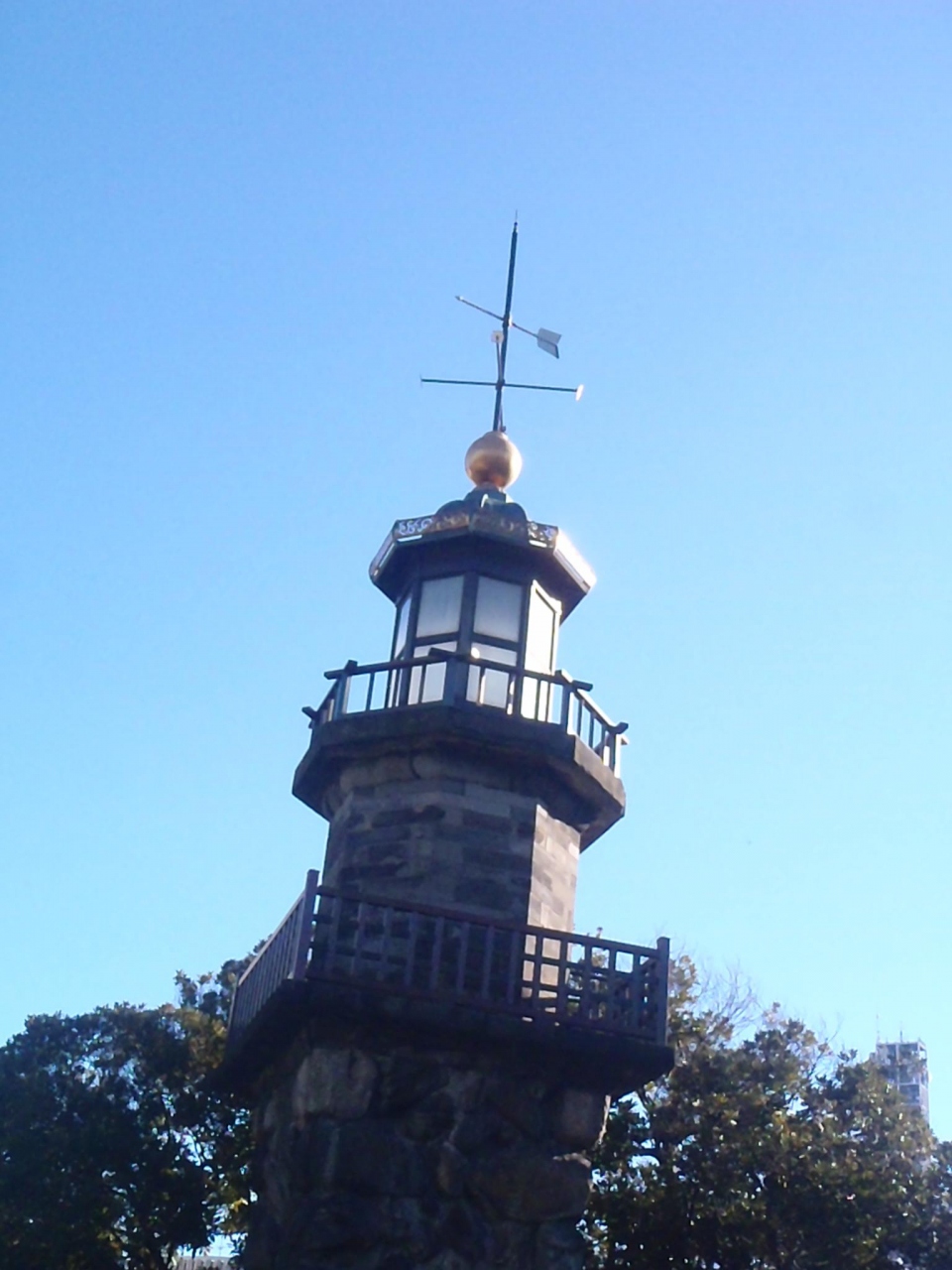 東京メトロ九段下駅2番出口から靖国通りを靖国神社方面へ約100m程土橋の田安橋を越えた辺りの千鳥ヶ淵に面した処にある洋風な高燈篭です。