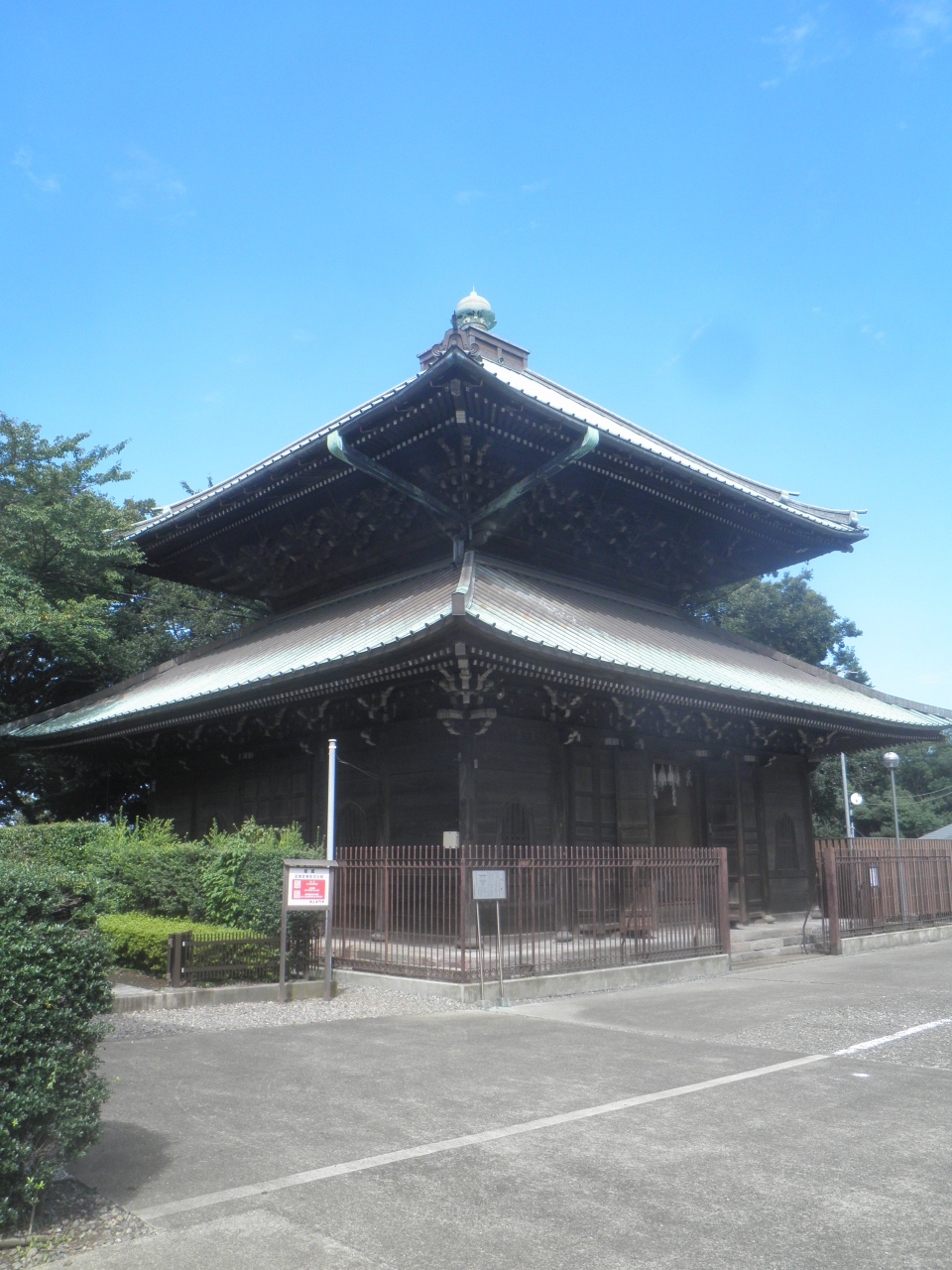 9月の連休に、東急池上線の池上駅でおりて、十数分のところにある池上本門寺に参拝しました。 この寺院の境内には経蔵があります。 木造の精巧な建物で趣があると思います。 周囲には柵がめぐらされていました。 境内には朝市が開かれていて、太鼓を叩く人や掃除をする人がいました。