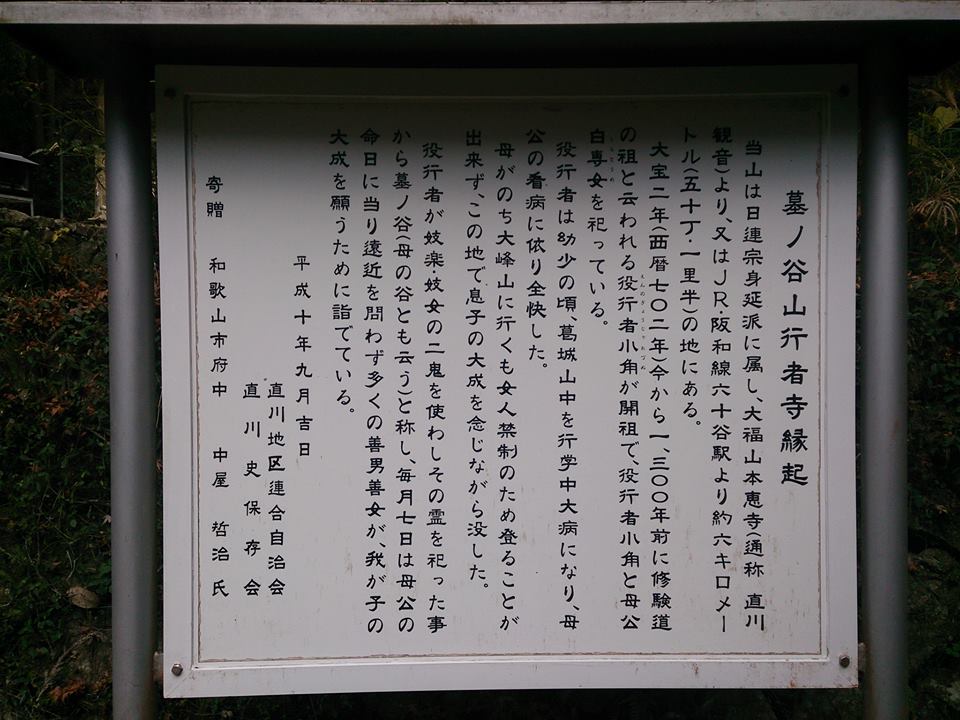 「墓の谷行者堂」は、正式には「墓の谷山行者寺」といい、「修験道の開祖」とされる役行者ゆかりの寺院です。