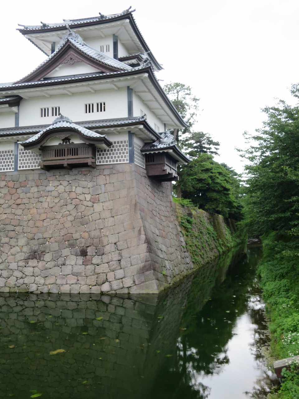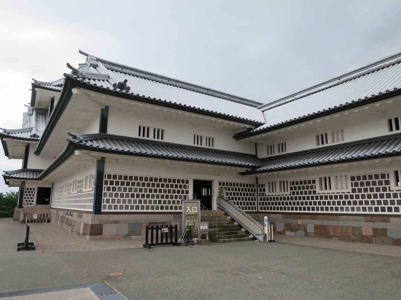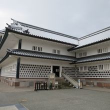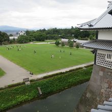 金沢城公園の三の丸広場から五十間長屋を見て右手にある櫓が菱櫓です。櫓の堀のある石垣の角に立ち金沢城の中で一番櫓らしい櫓です。