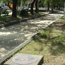 ショッピングビルの間の隣りにある広いオアシス的な公園です