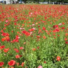 以前は麦畑だったそうですが、その跡地を利用して、今は、春にはポピーが、秋にはコスモスが楽しめます。かなり広いです。