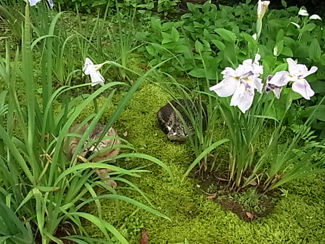 このあたりには人を全然恐れていない猫ちゃんがいて、ハナショウブとともに楽しめました。