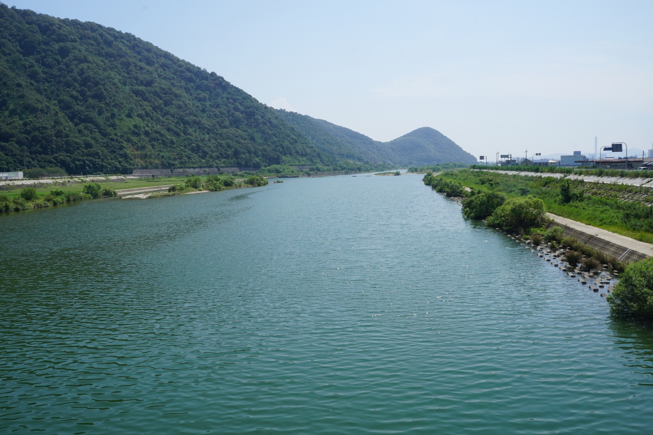河口に近いせいかゆったりとした流れが印象的。水運に活用されたとかの具体的な情報はありませんでしたが、それにも十分に耐えるような流れだと思いました。