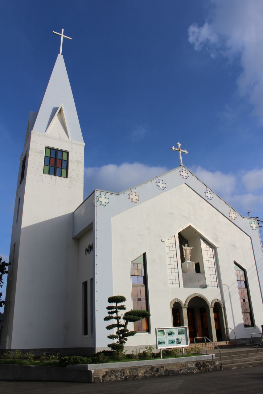 五島市で最も大きな教会かと思います。建物や内装などに特筆すべき点はありませんが、徐に置かれている聖書がこの地に宗教として染み込んでいることを実感させますし、何より福江町の中心部にありますのでアクセスは容易です。また、駐車場もあるためレンタカーで回る人も利用しやすいかと思いました。